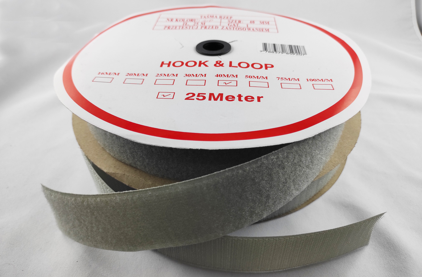 Description Auto-agrippant à coudre piece crochet et boucle biege 50 mm 25m