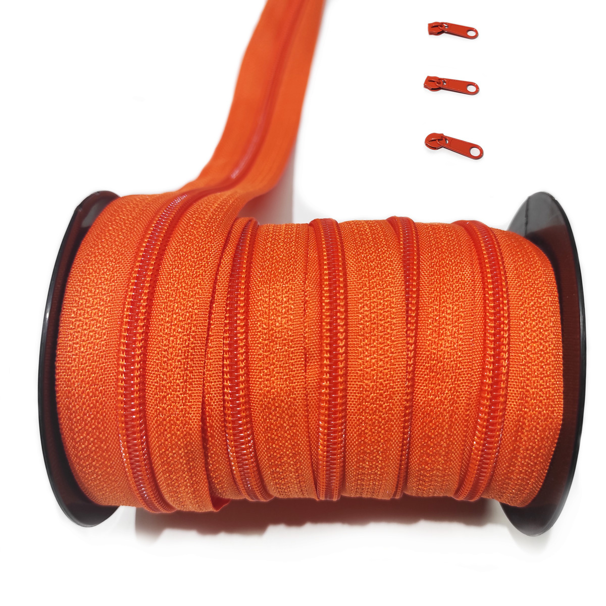 Description Fermeture à glissière en spirale orange 5 mm au métre