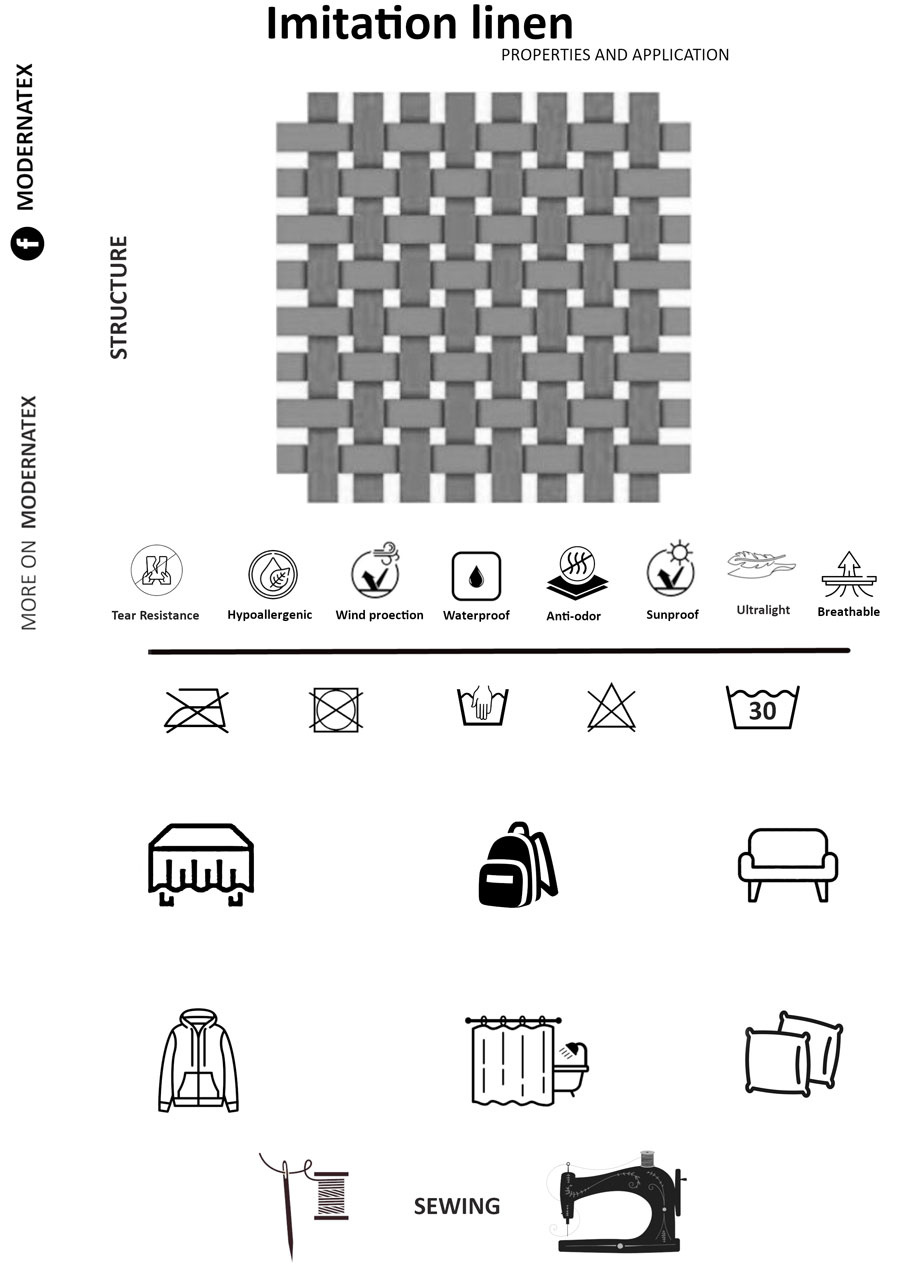 La toile imperméable imitation lin est un textile innovant alliant résistance mécanique, confort au toucher et propriétés hydrofuges élevées. Grâce à une structure en polyester renforcé et une double enduction (PU + couche déperlante), cette matière est parfaitement adaptée à un usage extérieur et intensif.