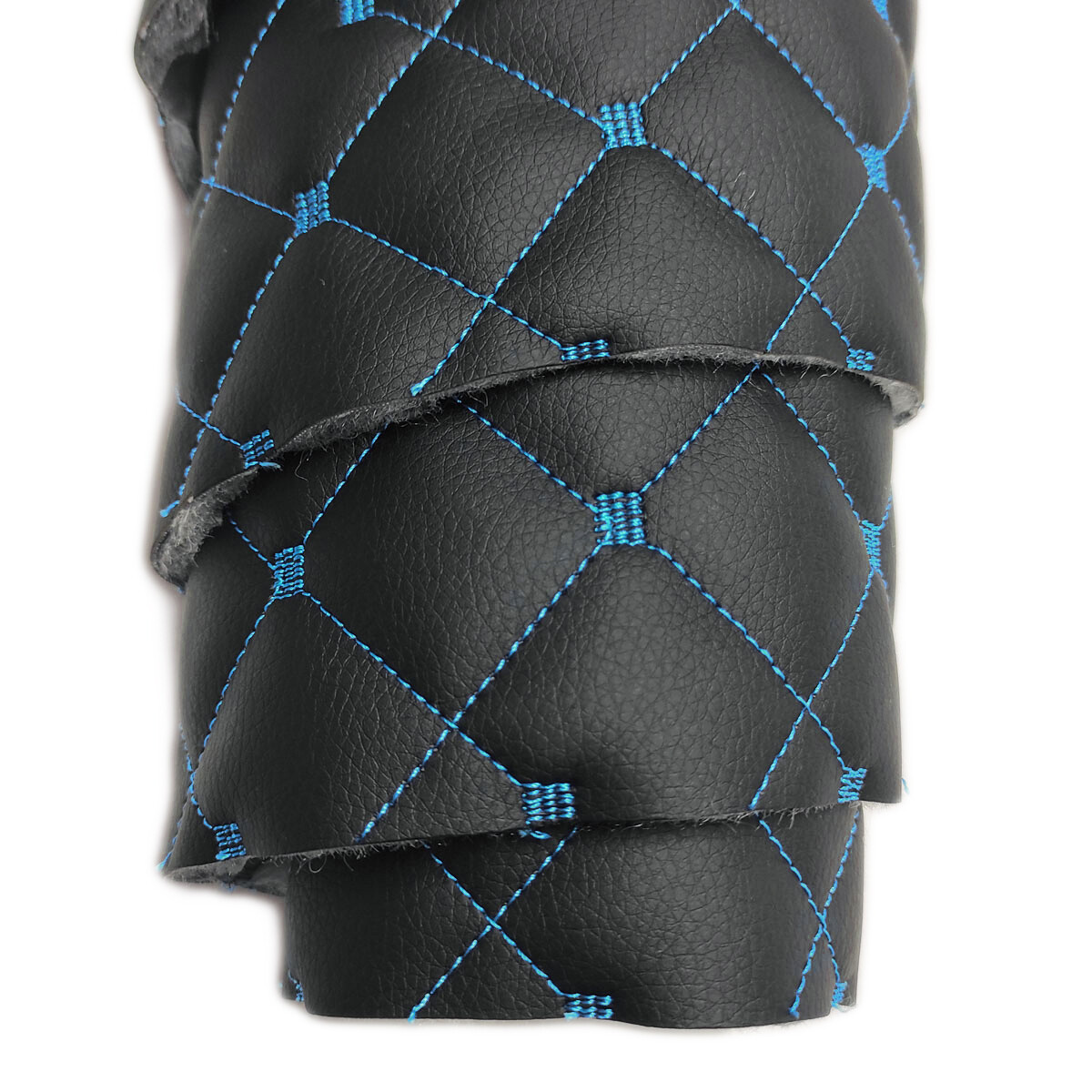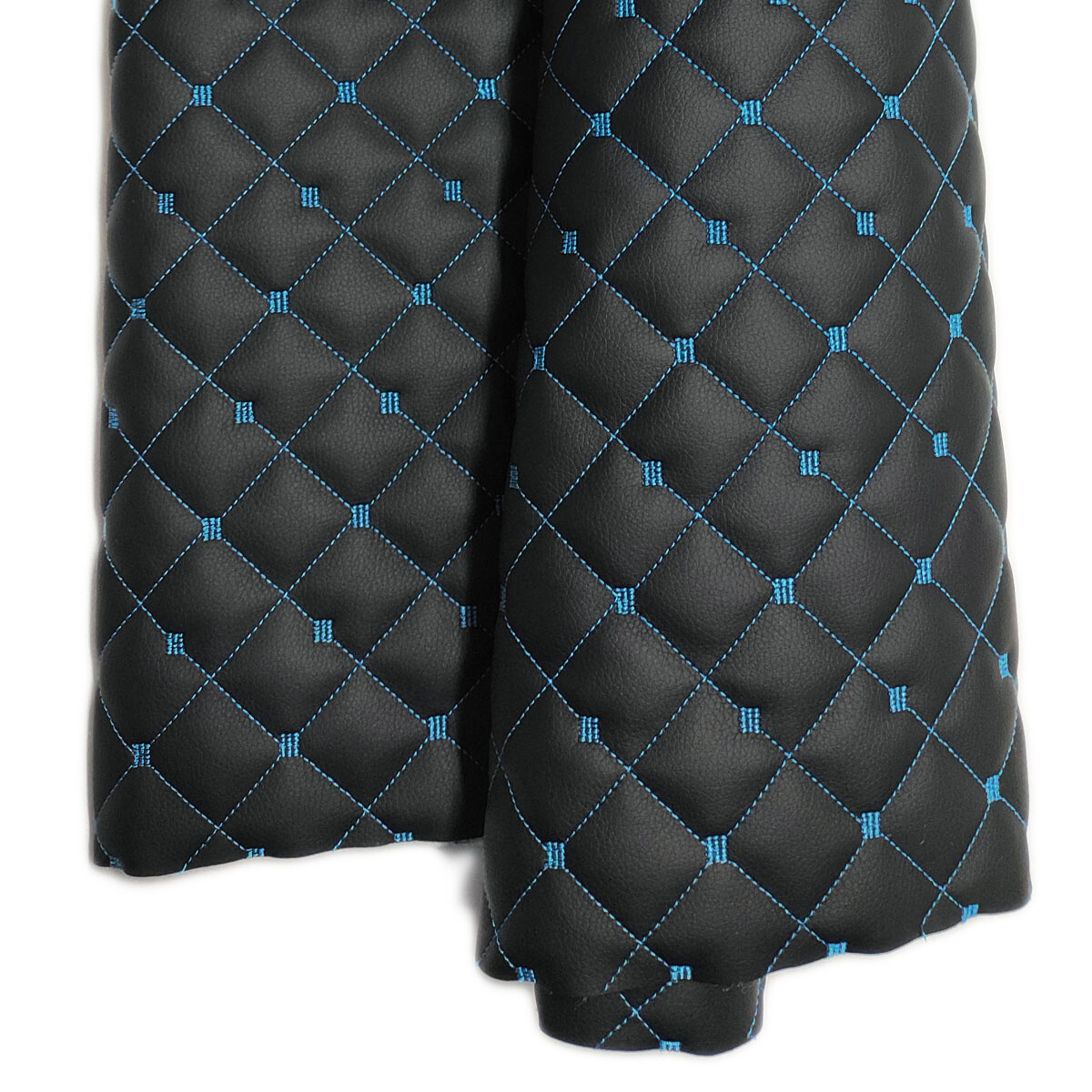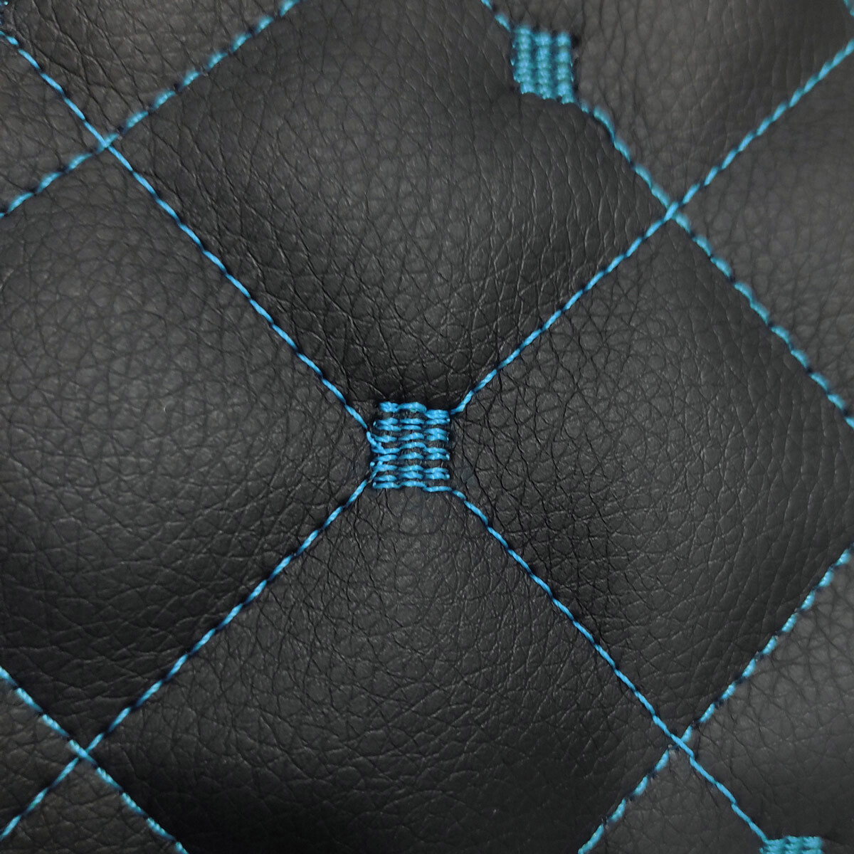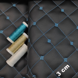 Description Simili cuir matelassé MIX, 540 g/m², largeur 145 cm, noir avec fil turquoise