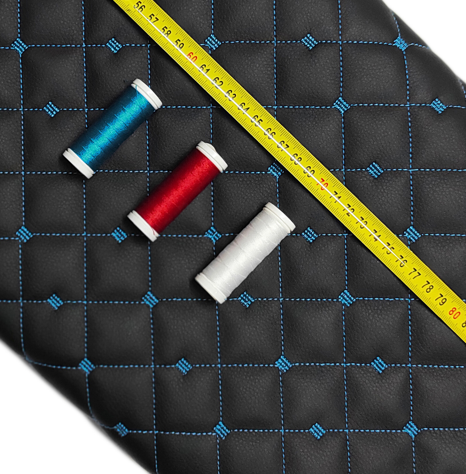 Description du produit. Ce similicuir matelassé 3x3, à base de polyuréthane (PU) sur un support 100 % polyester, se distingue par son aspect structuré et sa robustesse. Grâce à son design matelassé en losanges (3 x 3 cm), il offre non seulement un effet esthétique premium, mais également une meilleure résistance à l’usure. Ce matériau est idéal pour la confection de textiles techniques et décoratifs.