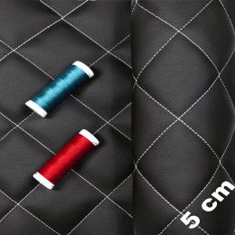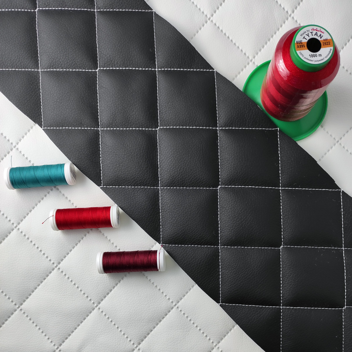 Description du produit. Ce similicuir matelassé 5x5, à base de polyuréthane (PU) sur un support 100 % polyester, se distingue par son aspect structuré et sa robustesse. Grâce à son design matelassé en losanges (5 x 5 cm), il offre non seulement un effet esthétique premium, mais également une meilleure résistance à l’usure. Ce matériau est idéal pour la confection de textiles techniques et décoratifs.