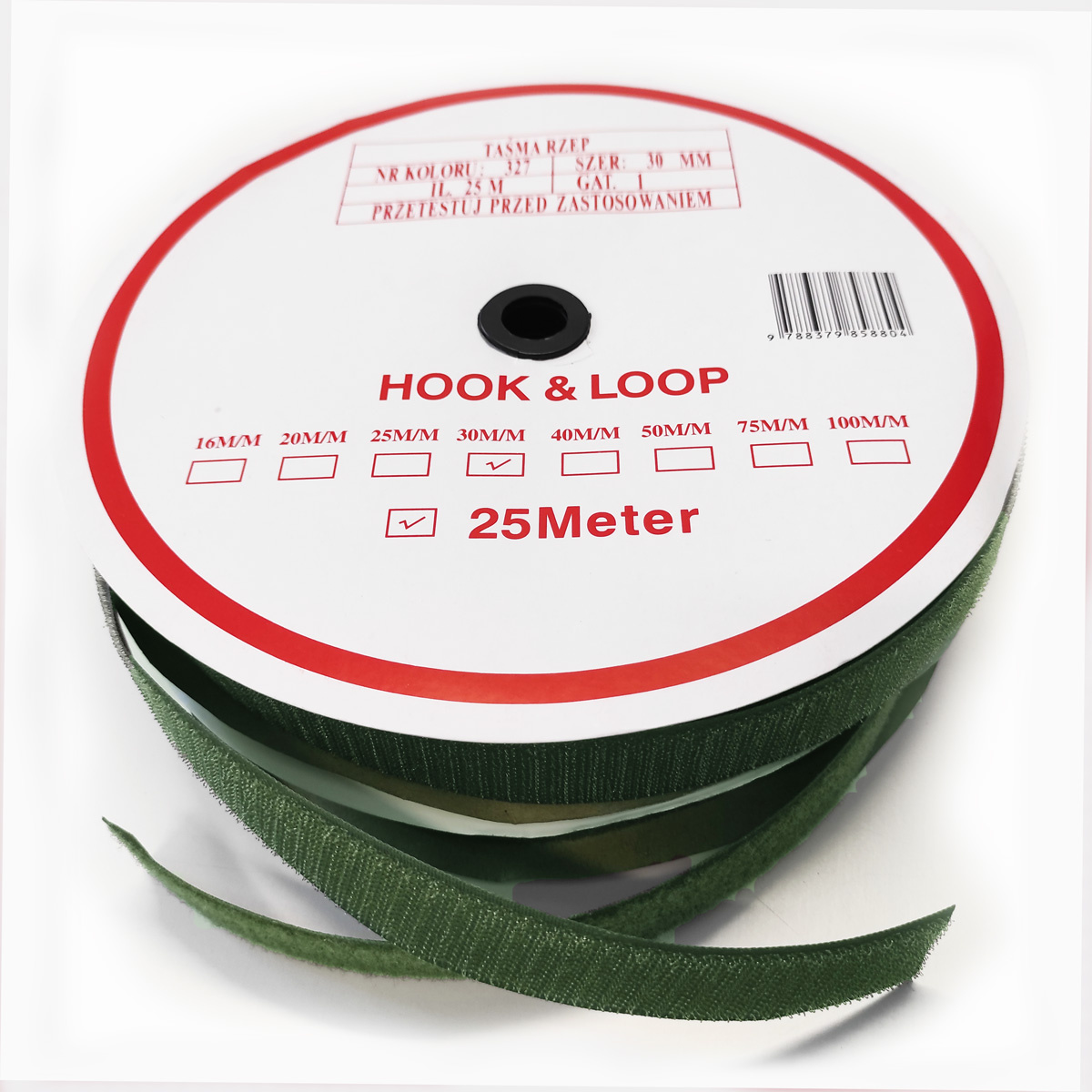Description Auto-agrippant à coudre piece crochet et boucle khaki 30 mm 25m