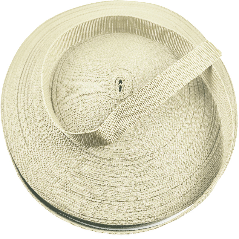 Description Ruban polypropylène renforcé pour sacs 30 mm couleur ecru (50 m)