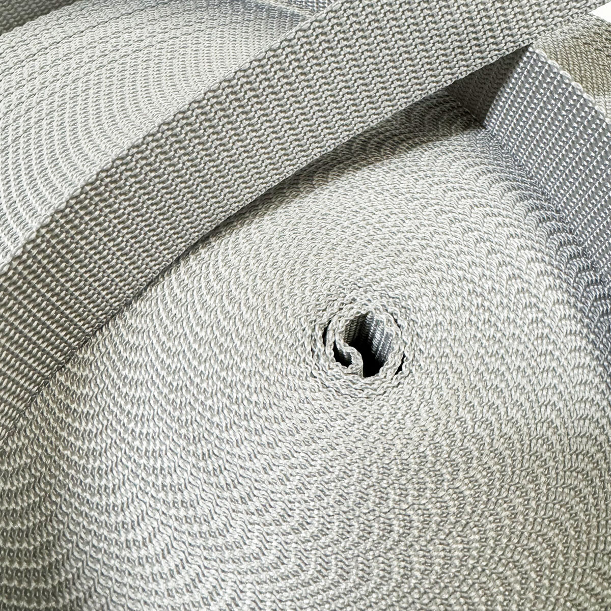 Description Ruban polypropylène renforcé pour sacs 25 mm couleur gris clair (50 m)