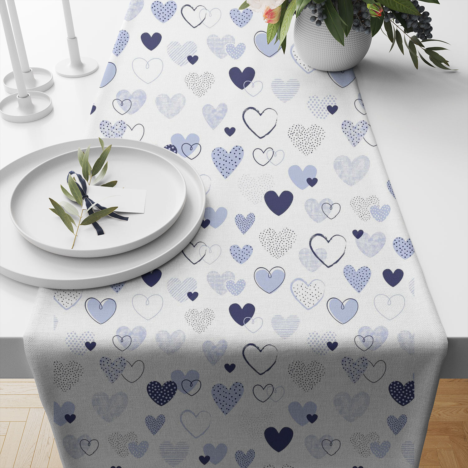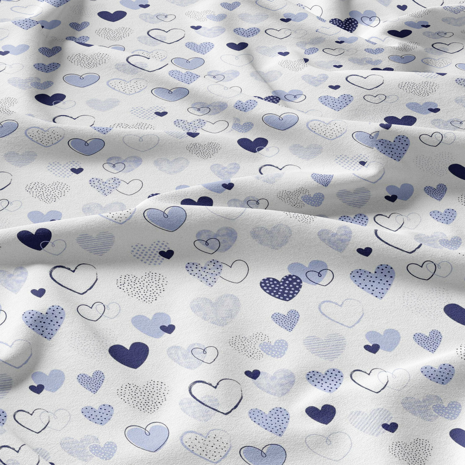 Description Tissu coton au métre couleur blanche coeurs bleu 486