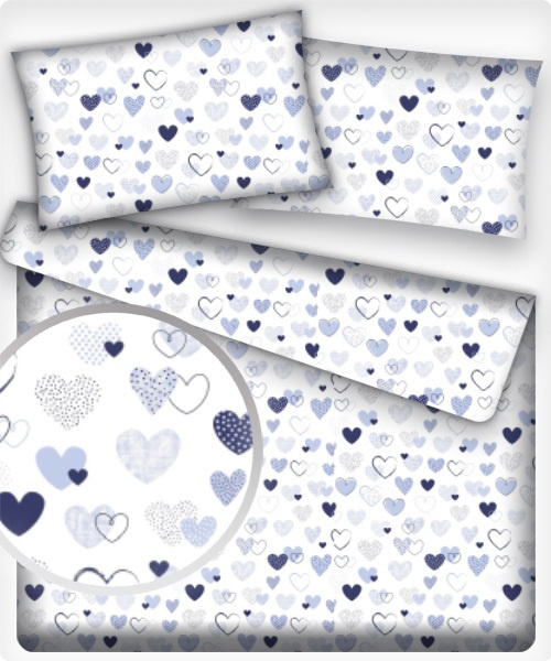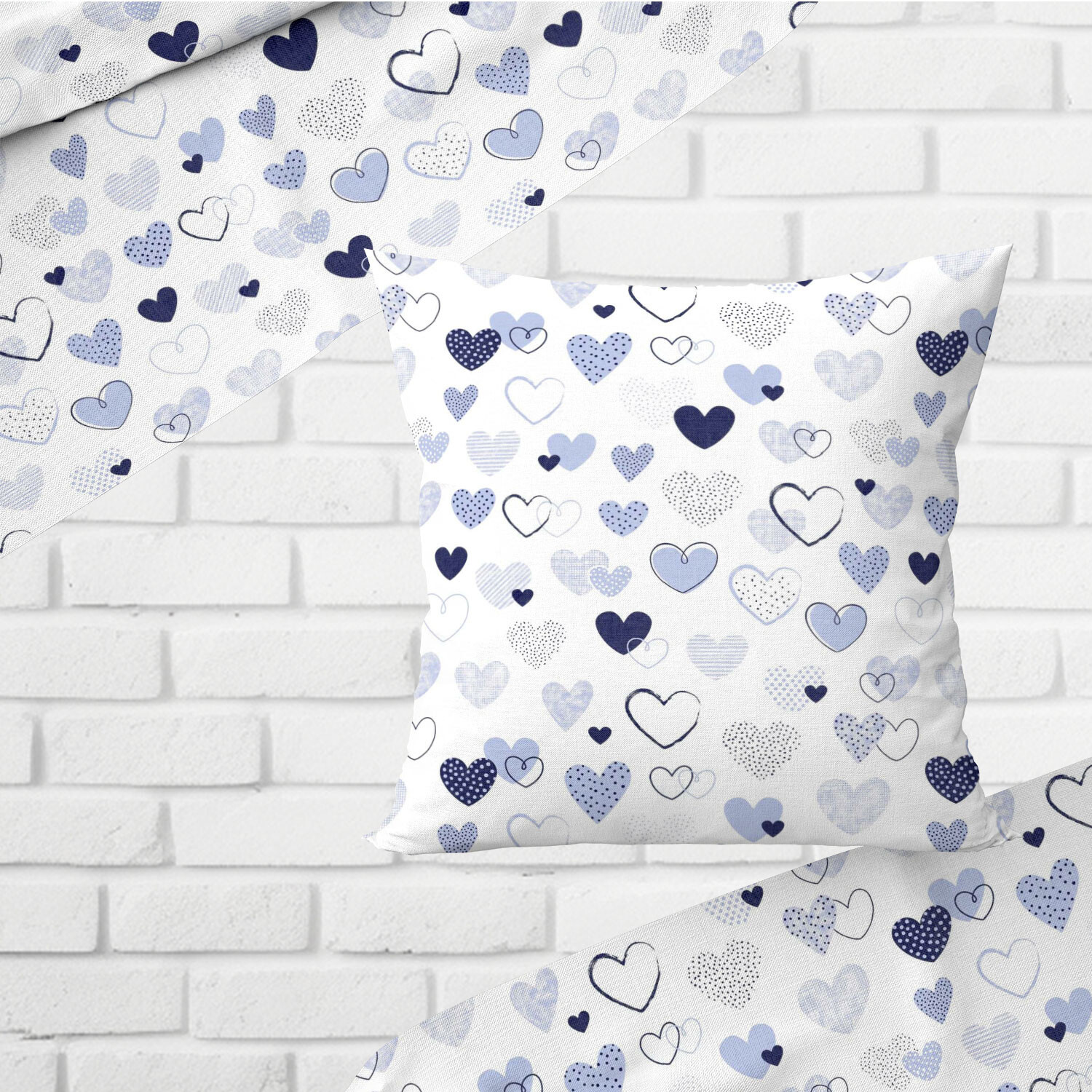 Tissu coton au métre couleur blanche coeurs bleu 486