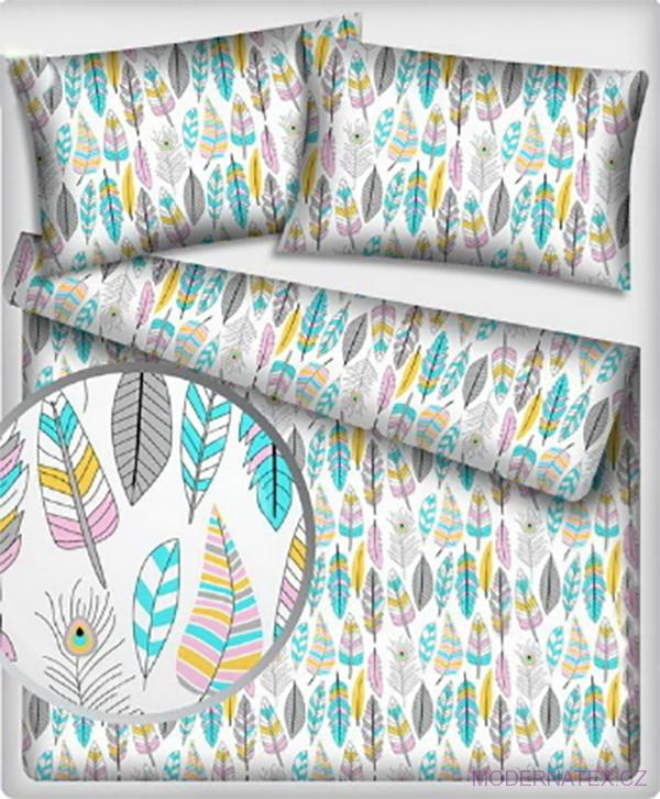 Description Tissu coton au métre couleur blanche plumes menthol 482