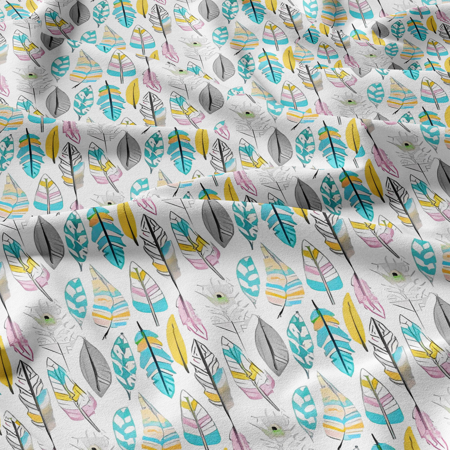 Tissu coton au métre couleur blanche plumes menthol 482