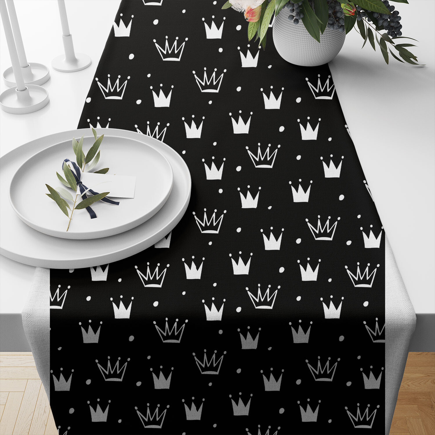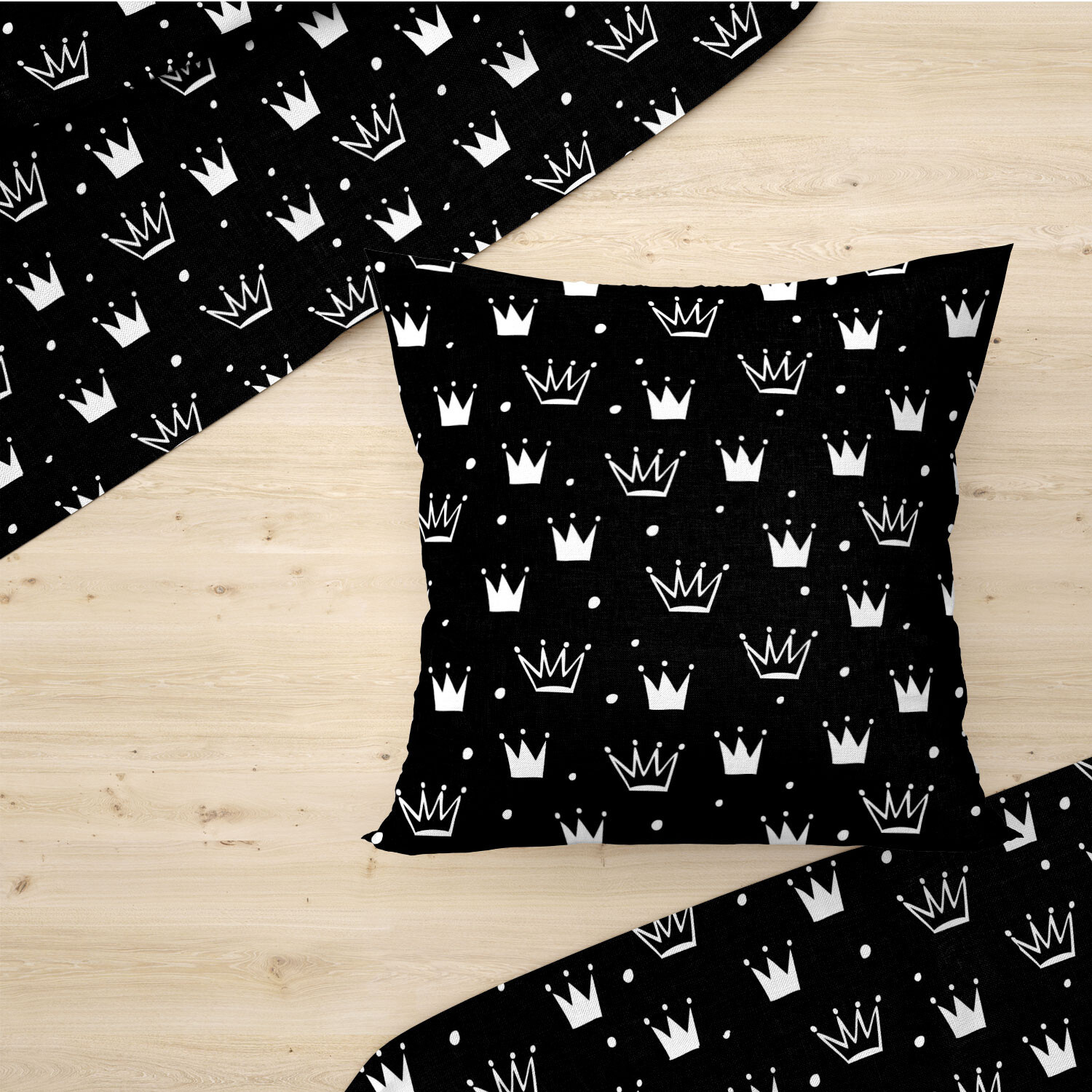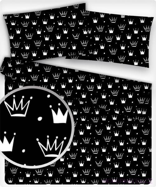 Tissu coton au mètre, 125 g/m², largeur 160 cm, imprimé Couronnes noir