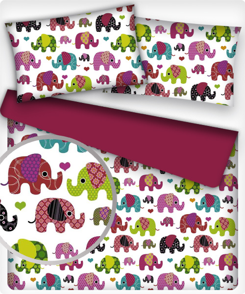 Tissu coton au métre imprimé Eléphants couleur amarante