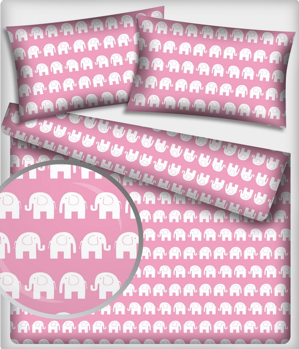Description Tissu coton au métre imprimé Eléphants couleur rose