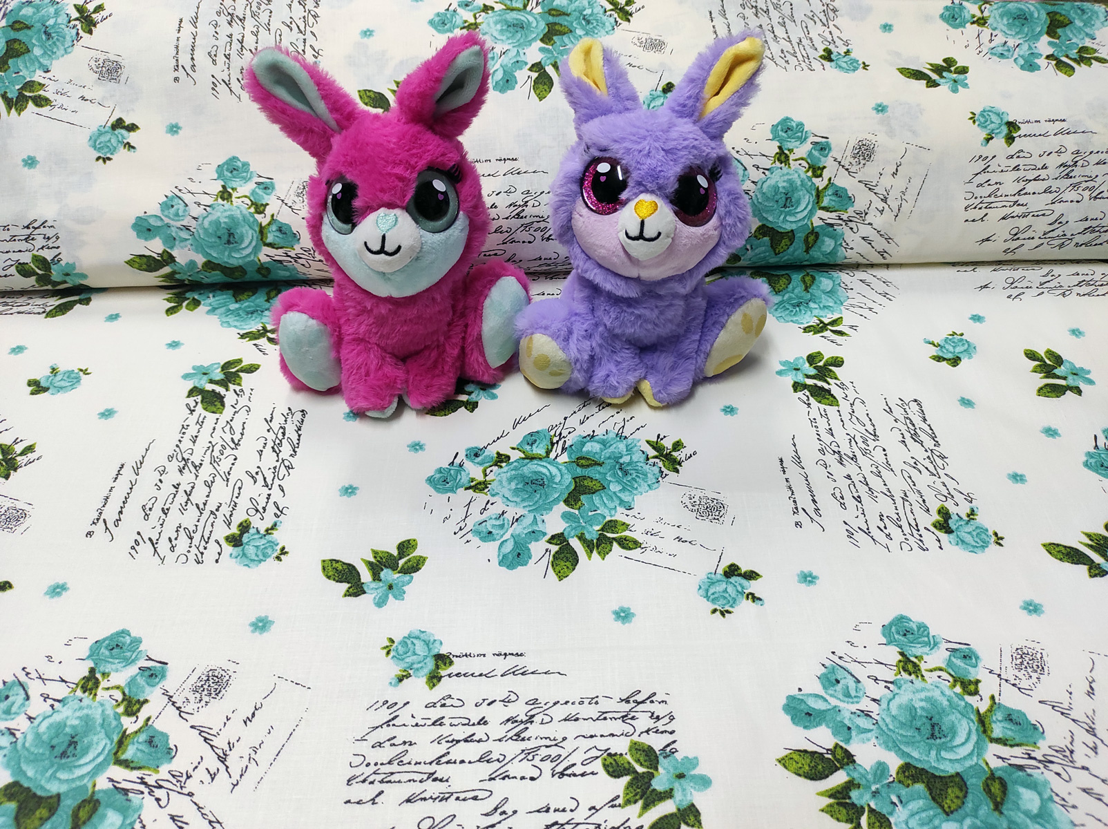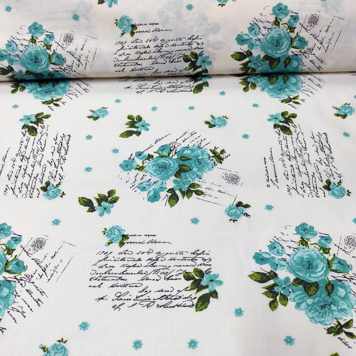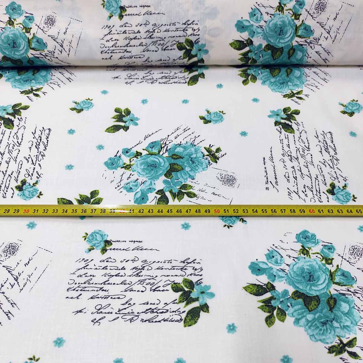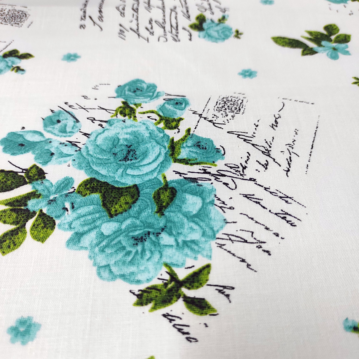 Description Tissu en coton au mètre, 125 g/m², largeur 160 cm, imprimé à fleurs turquoise