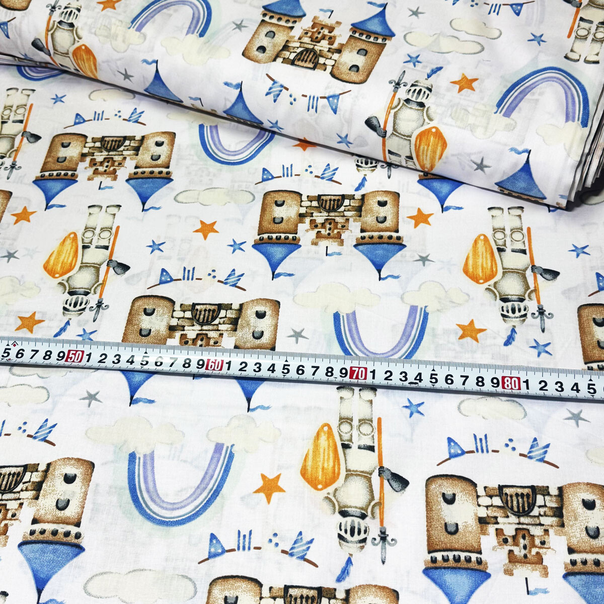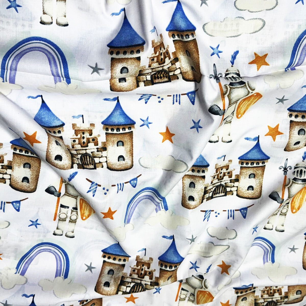 Tissu coton au métre imprimé Fortesse blanche