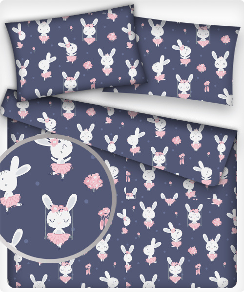 Description Tissu coton au métre imprimé Lapin couleur grenat