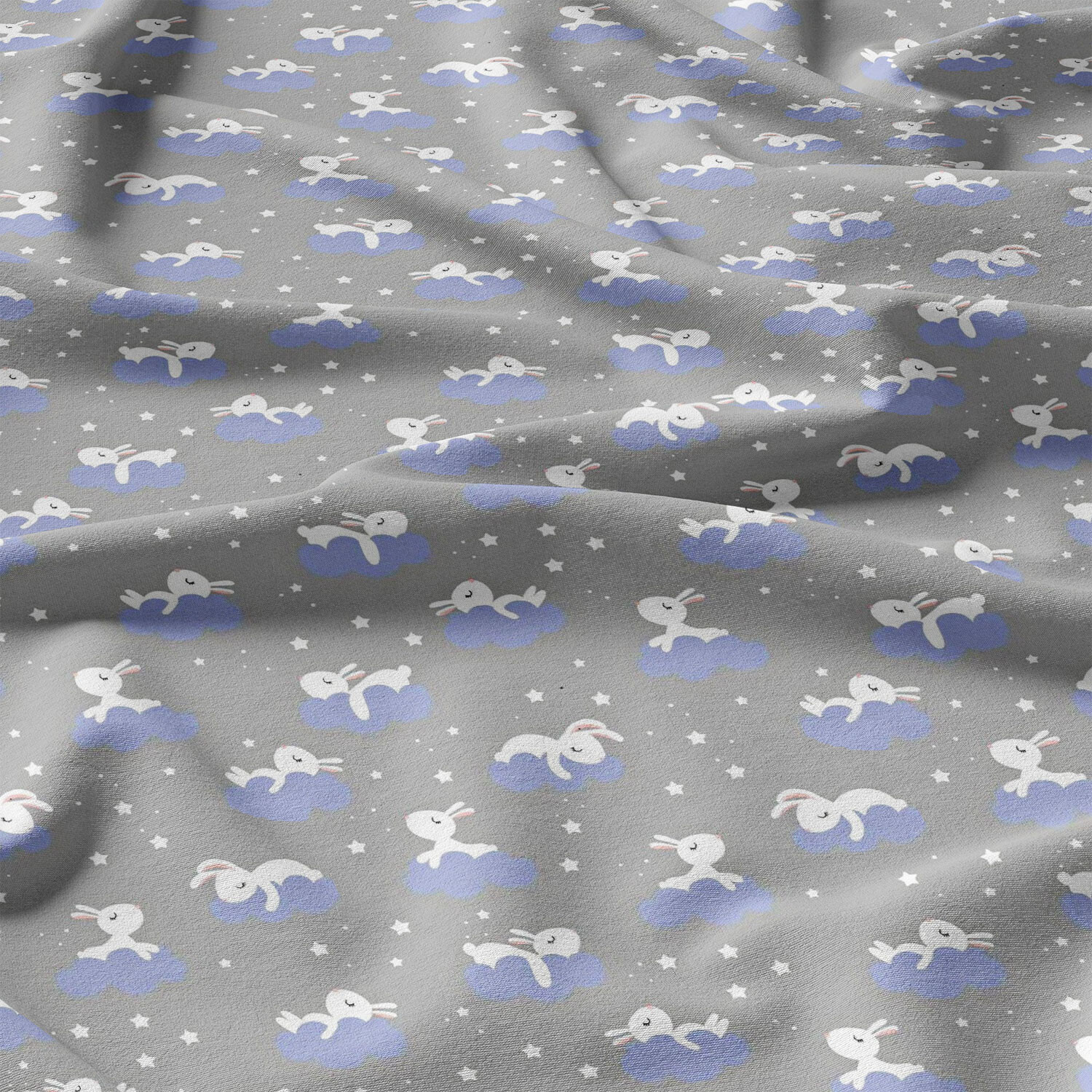 Tissu coton au métre imprimé Lapins couleur gris 1