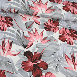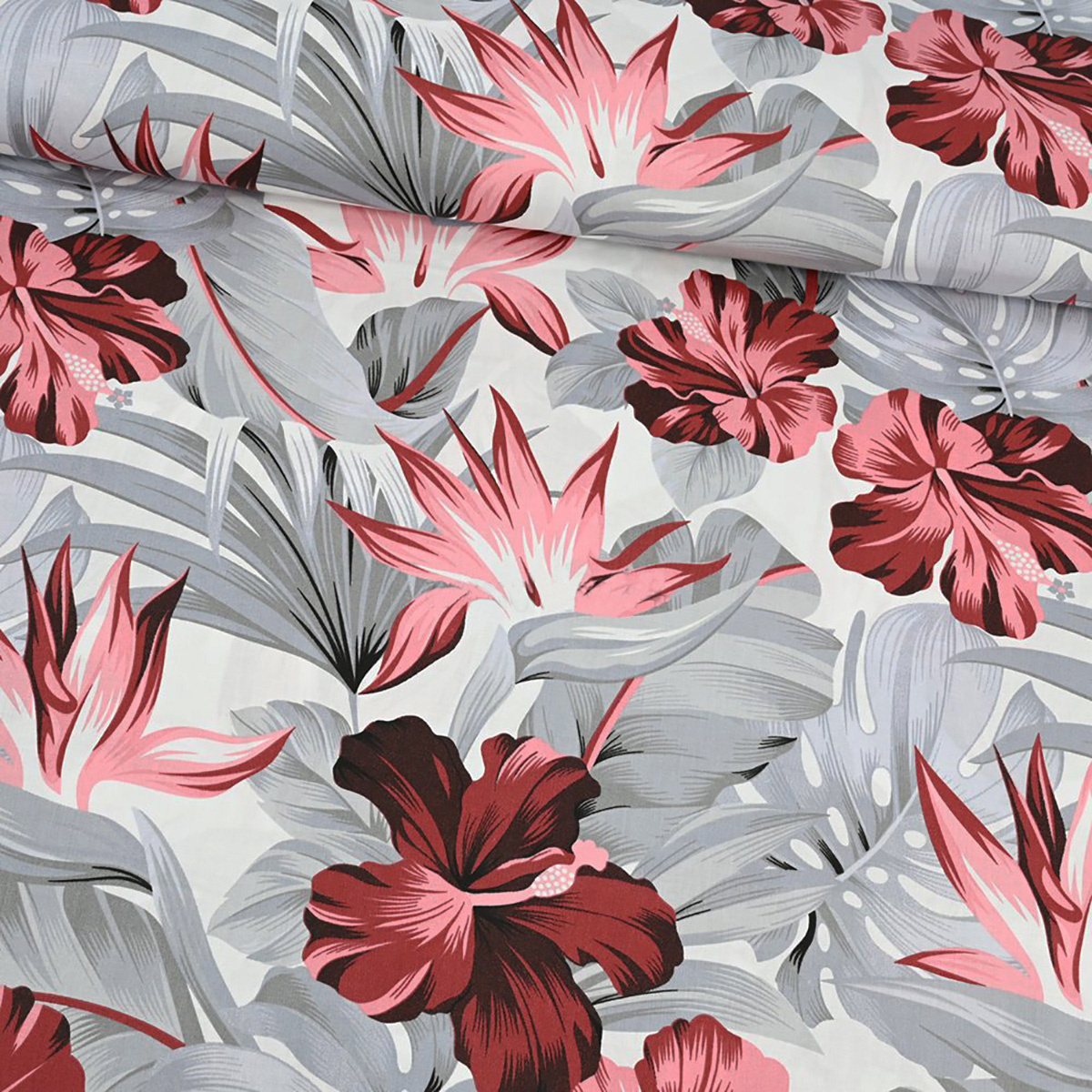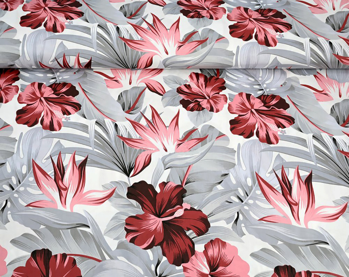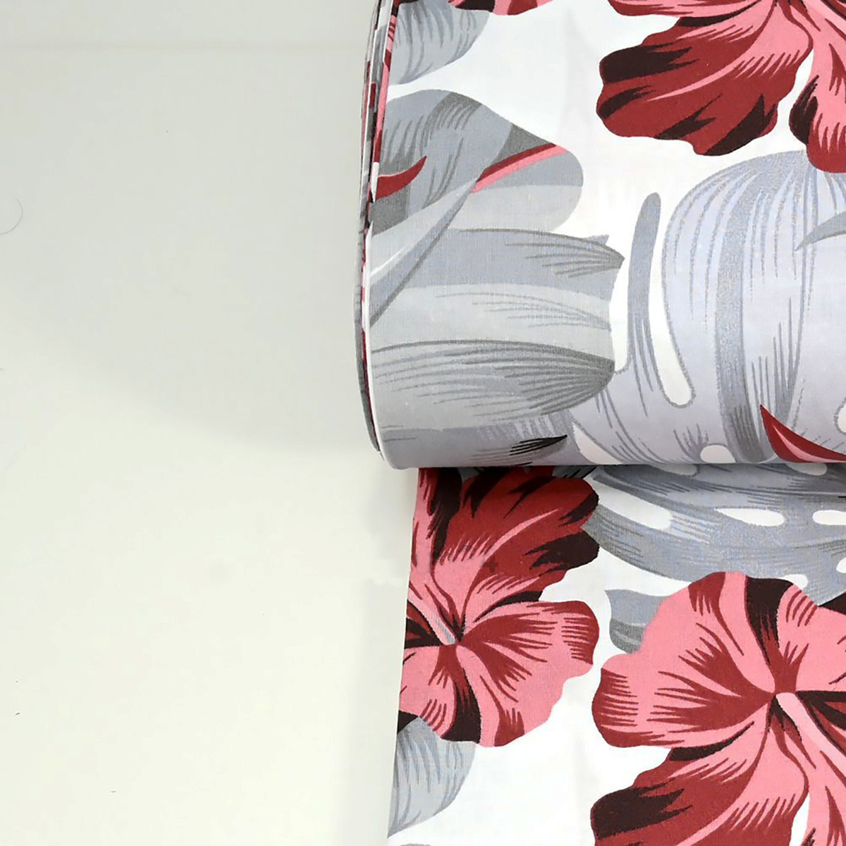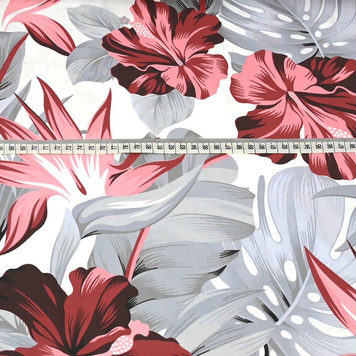 Description Tissu en coton au mètre, 125 g/m², largeur 160 cm, imprimé à monstera gris sur fond blanc
