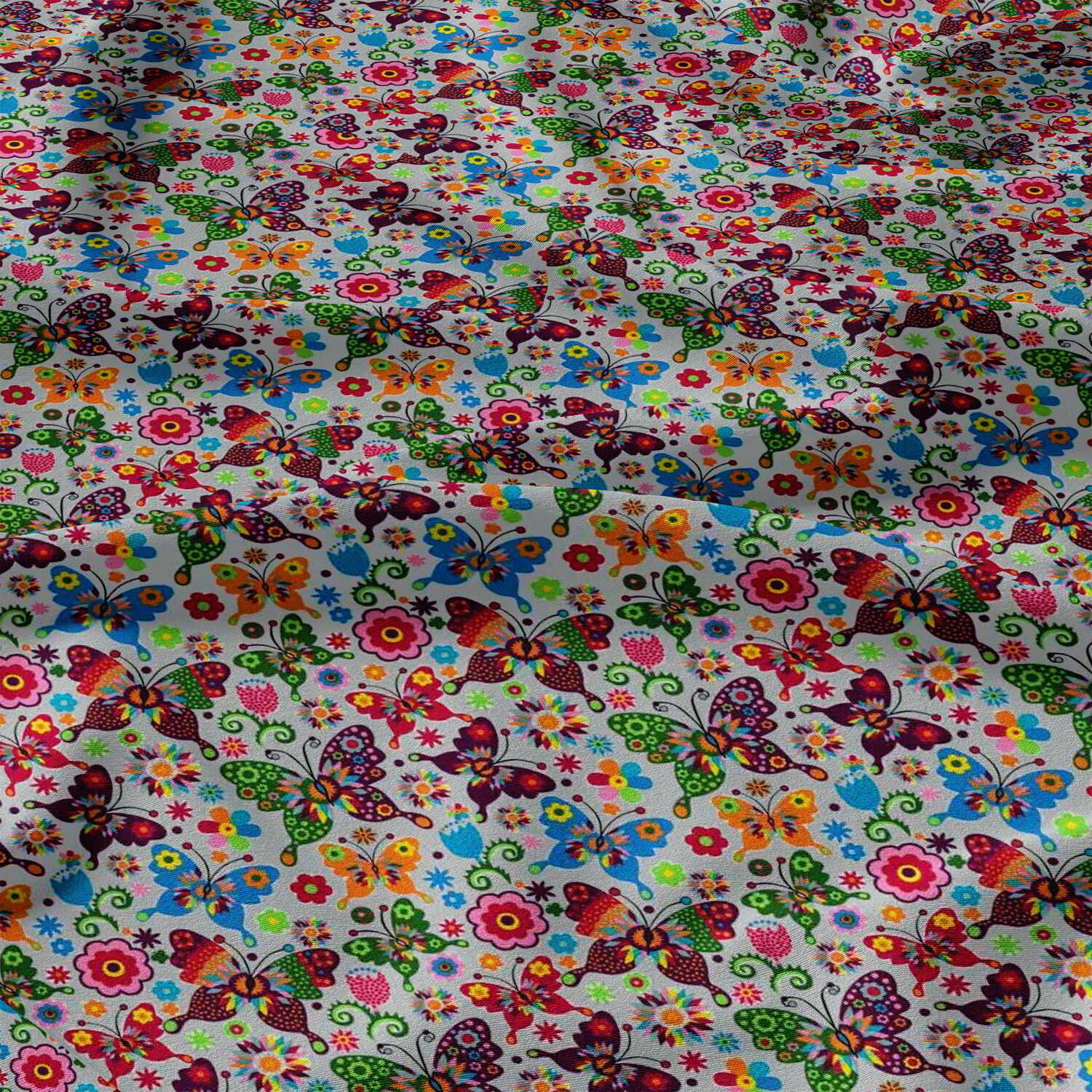 Description Tissu coton au métre imprimé Papillons couleur gris