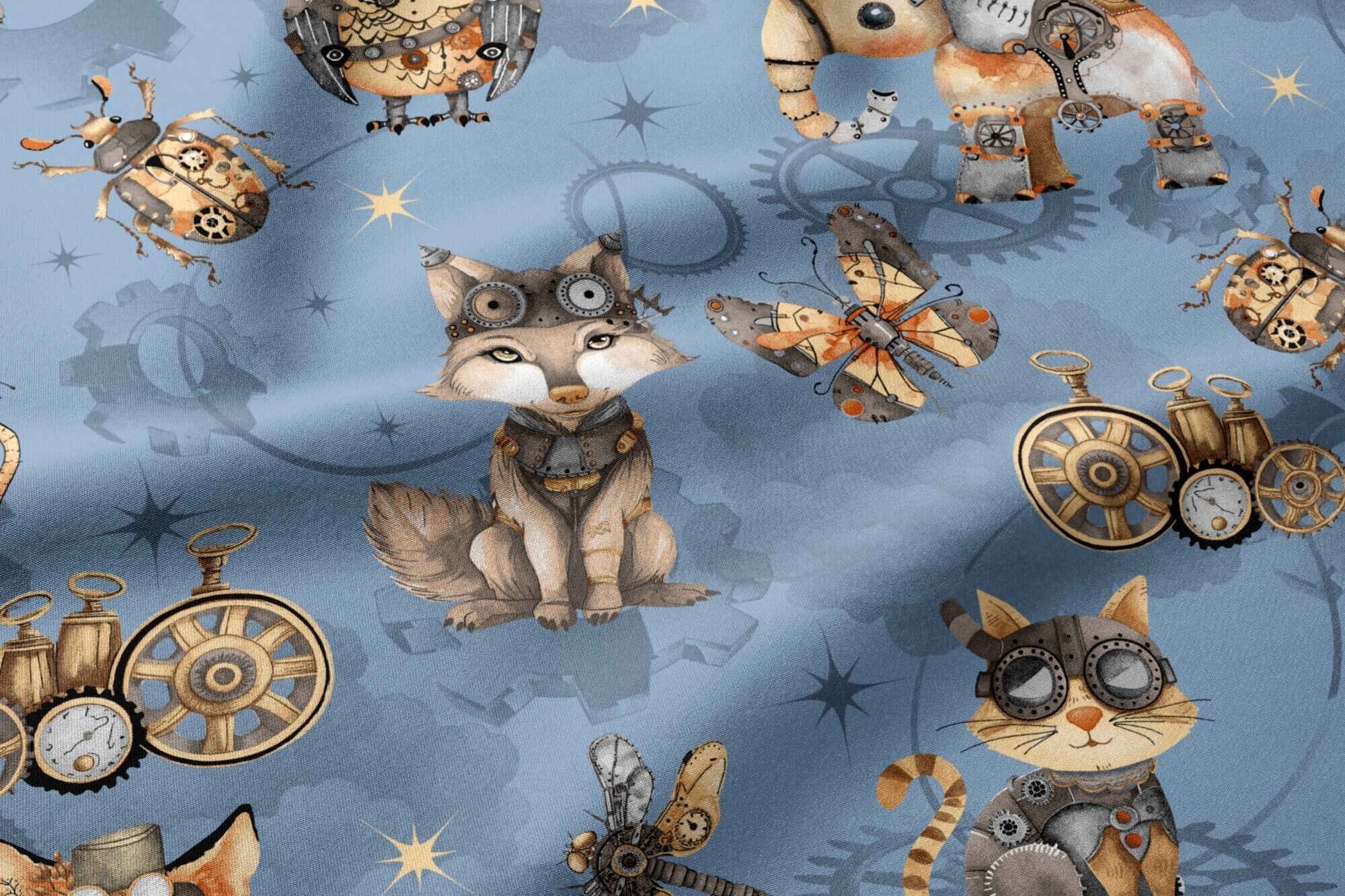 Tissu coton au métre imprimé Petits animaux, couleur Bleu