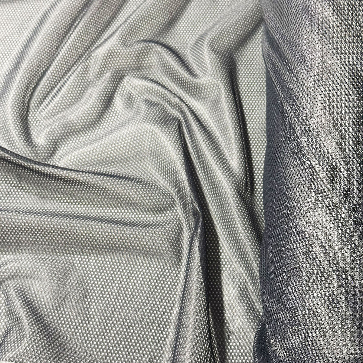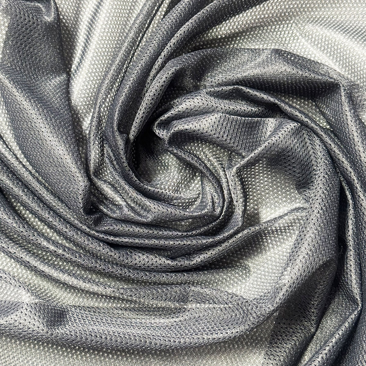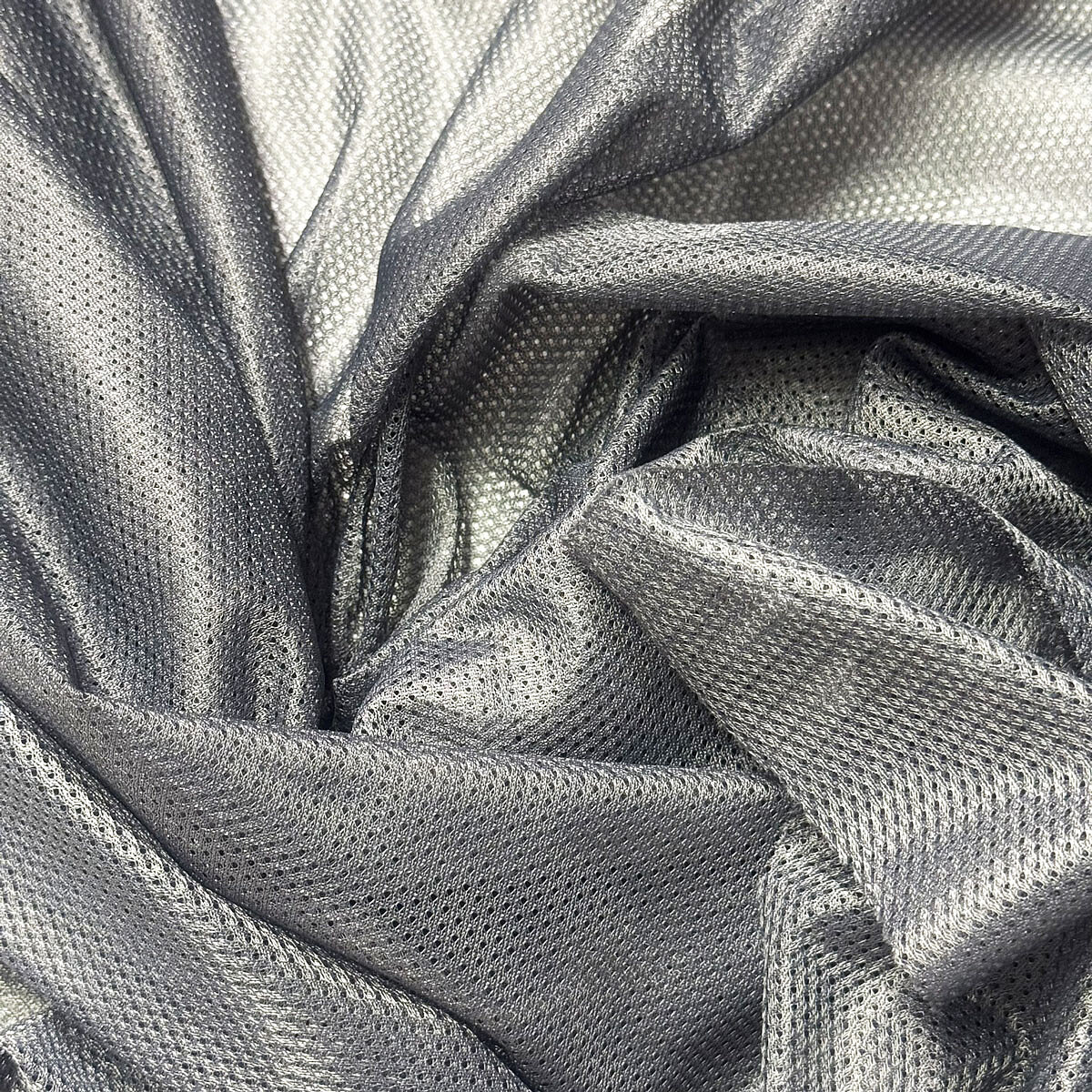 Description Tissu filet mesh gris au mètre, maille fine 2 × 2 mm, 60 g/m², largeur 150 cm