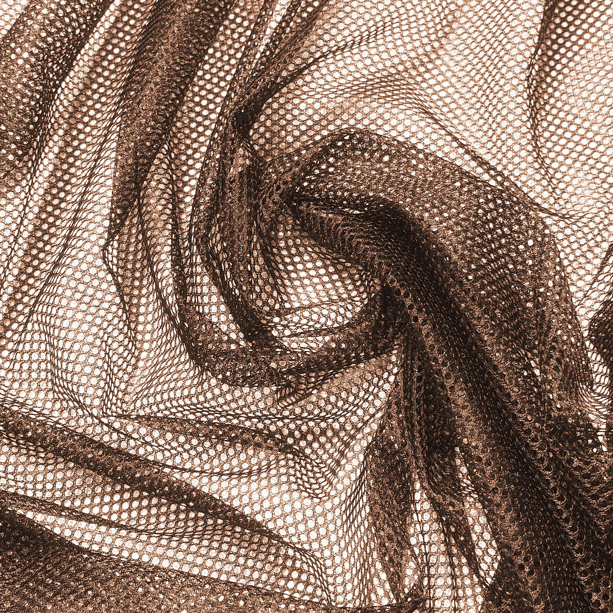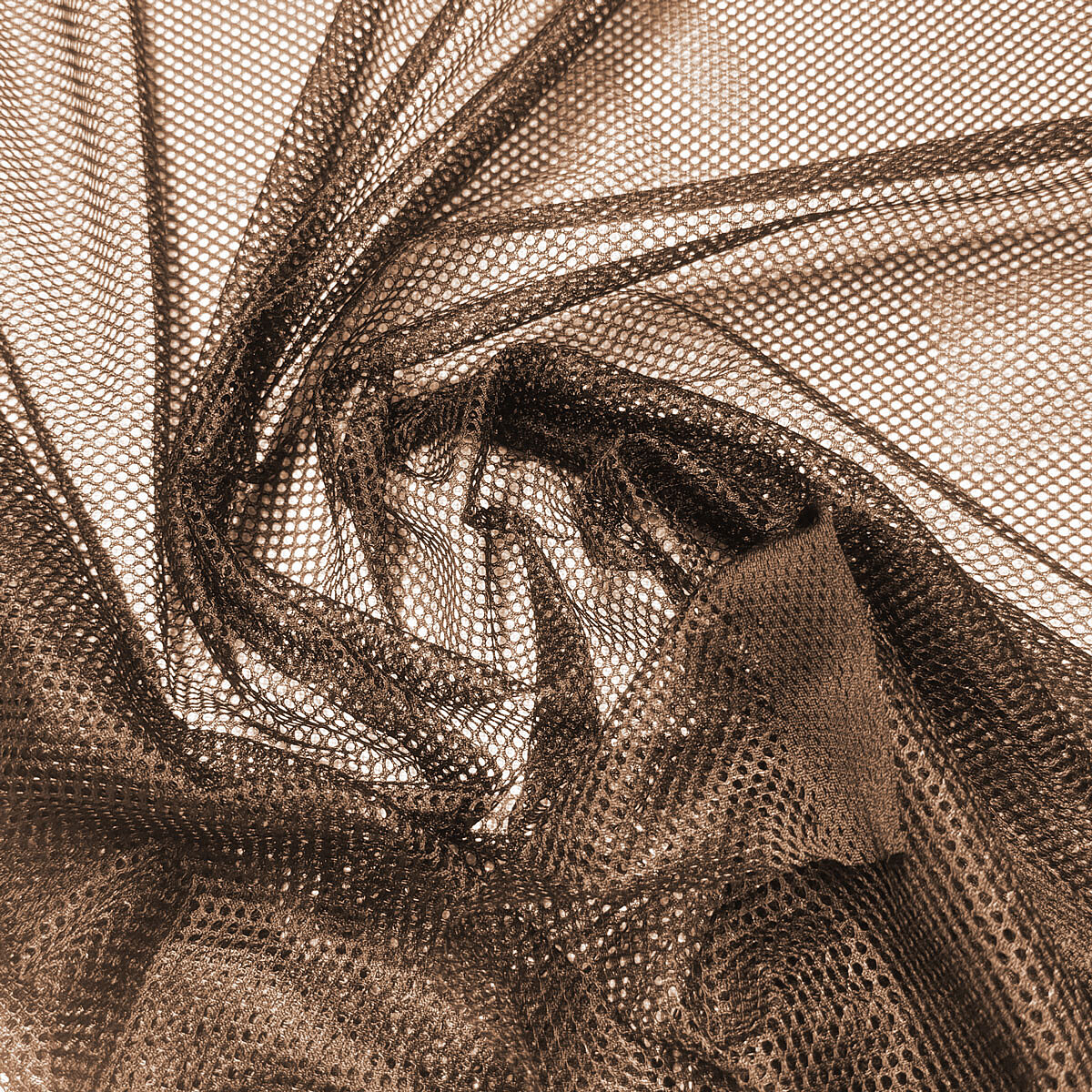 Description Tissu filet mesh marron au mètre, maille fine 2 × 2 mm, 60 g/m², largeur 150 cm
