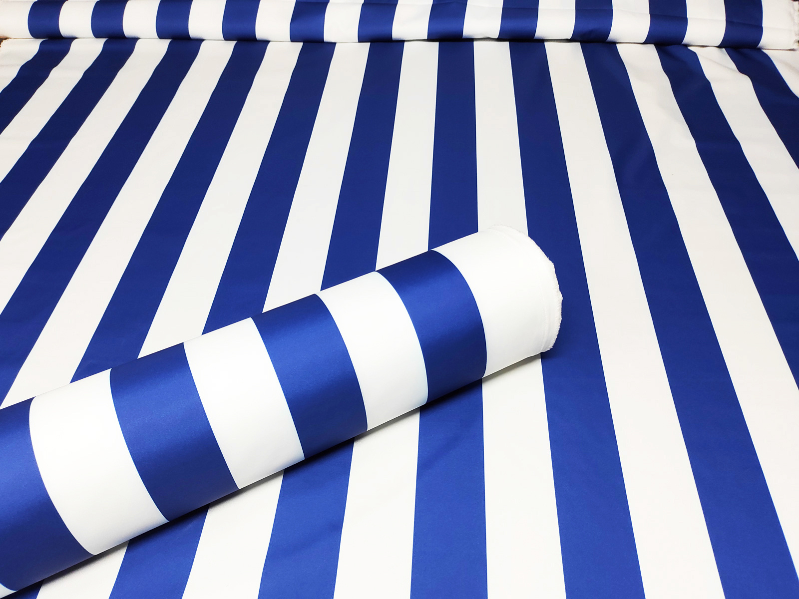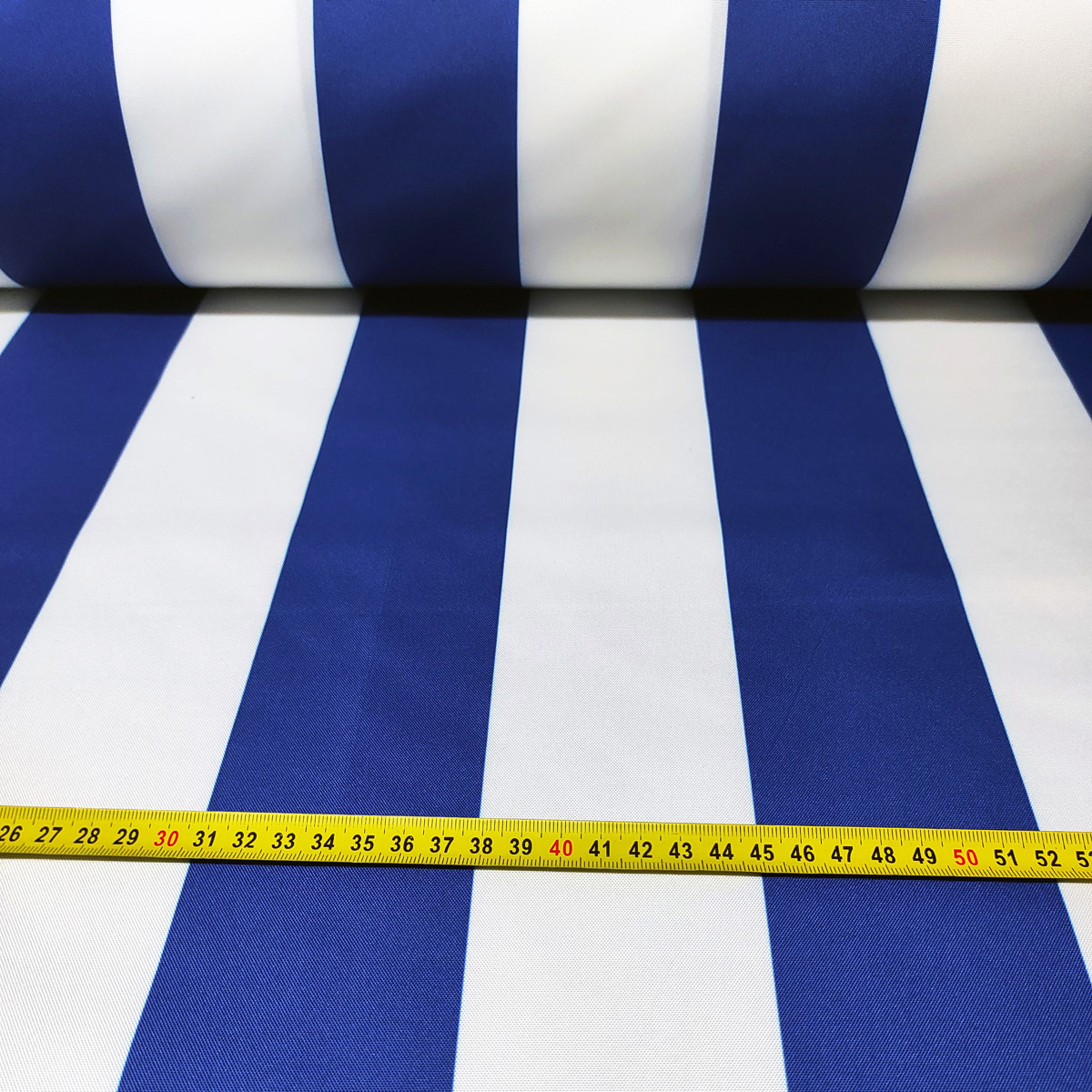 Description Tissu imperméable PREMIUM à rayures bleues et blanches, polyester PU, 190 g/m², largeur 160 cm